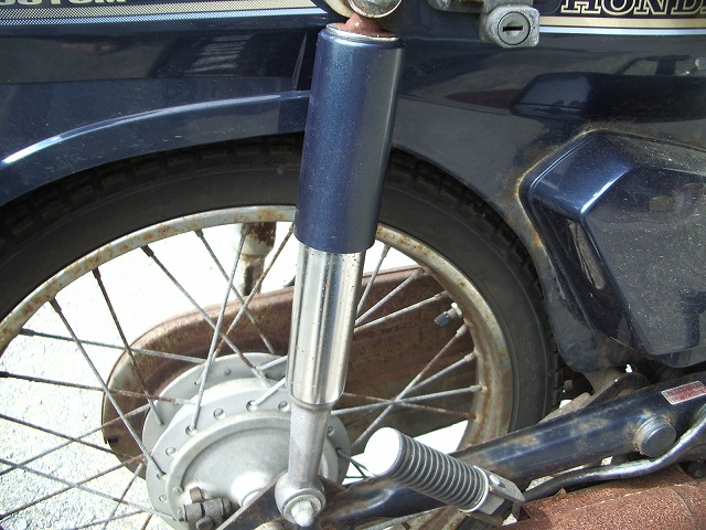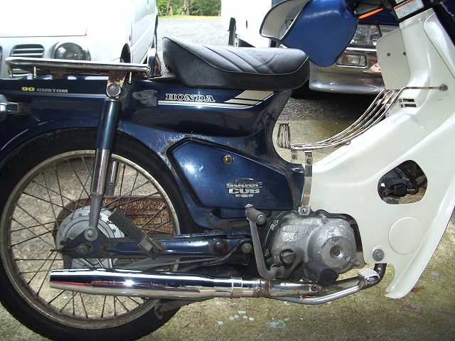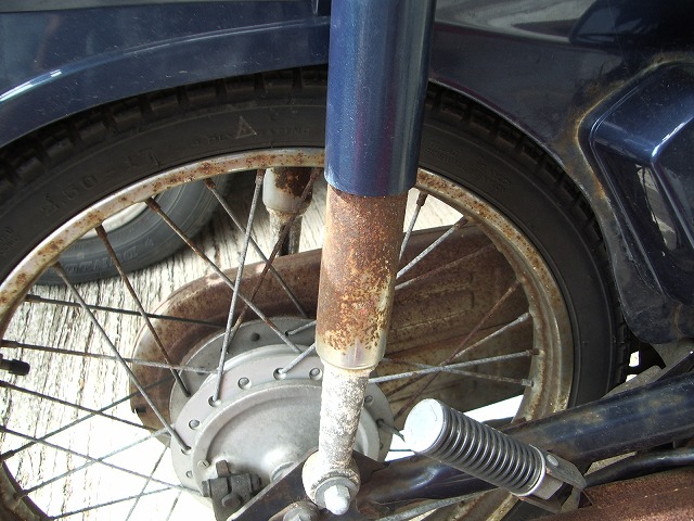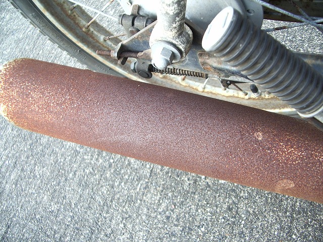島の潮風(塩風?)にさらさせて、すっかり錆びだらけになったカブ号のマフラー。