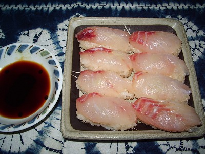 この前釣ったハナフエダイで、握りずしにトライ。