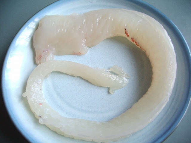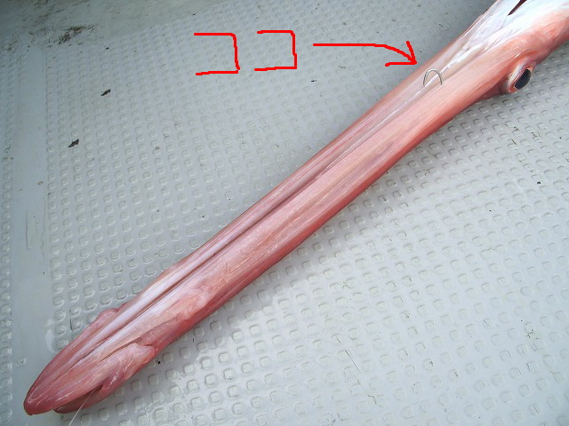 こんなに長い口なのに、釣り針の掛かったところはずいぶん奥です。一気にこんなところまで吸い込んでるんですね。