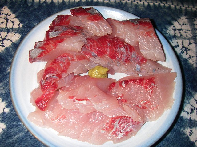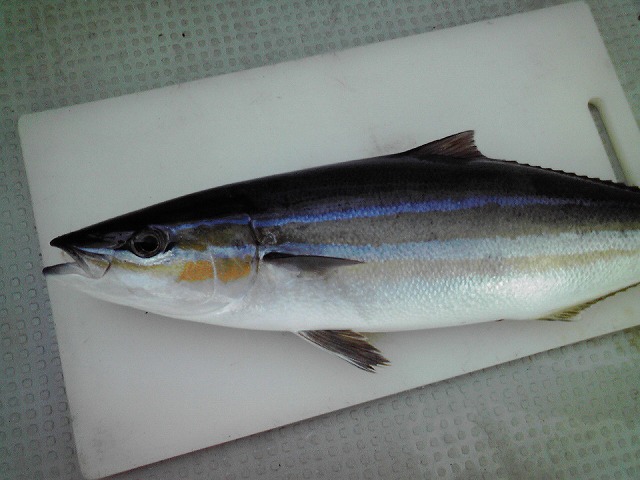 今日、トローリングで釣って、活き〆血抜きを完璧にしたので美味しいはず。