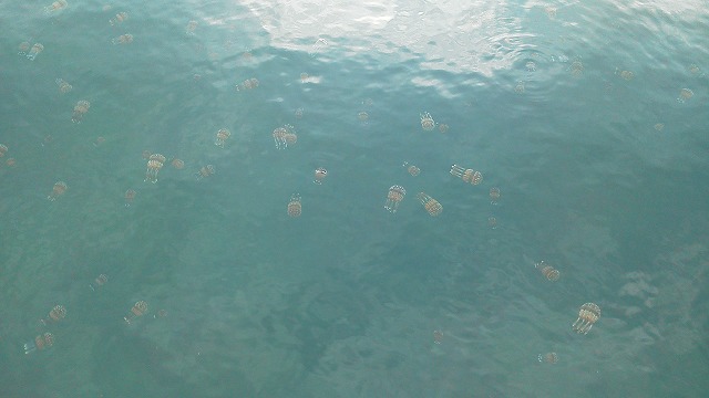 ロープ取りに港の中を泳いでいたときに、クラゲだらけで気持ち悪かったのを