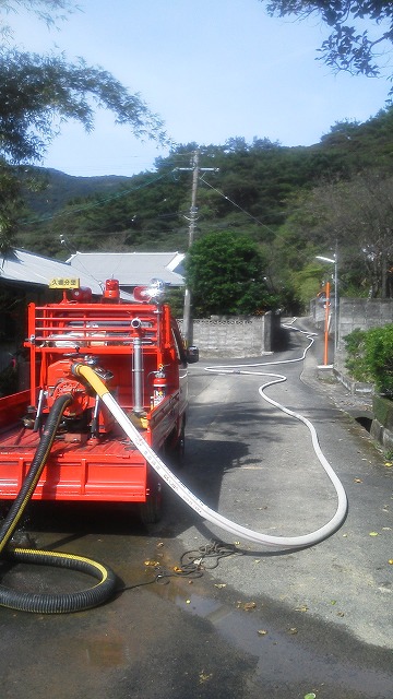 消防団のポンプ車が出動していますが、火事ではありません。