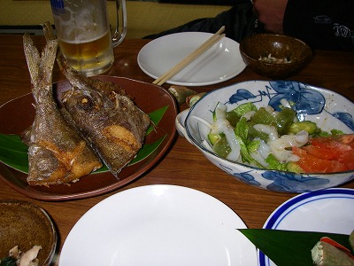1日の作業を終えて、夕食はダイビングのK本氏と