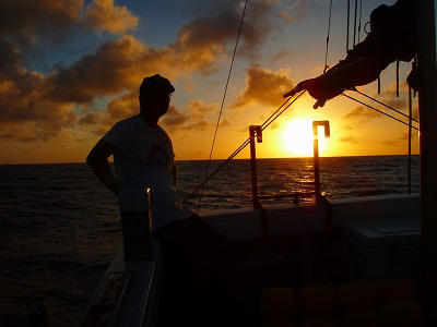 夜の海に潜ってロープを外し、船を留めるまで1時間もかかってしまった。