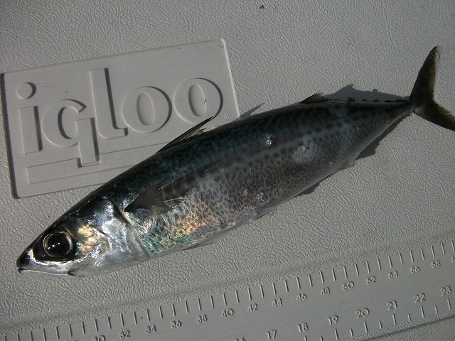 奄美大島近海には、3年前くらいから急にゴマサバの大きな群れが現れて、そこいらじゅうで群れに当ります。